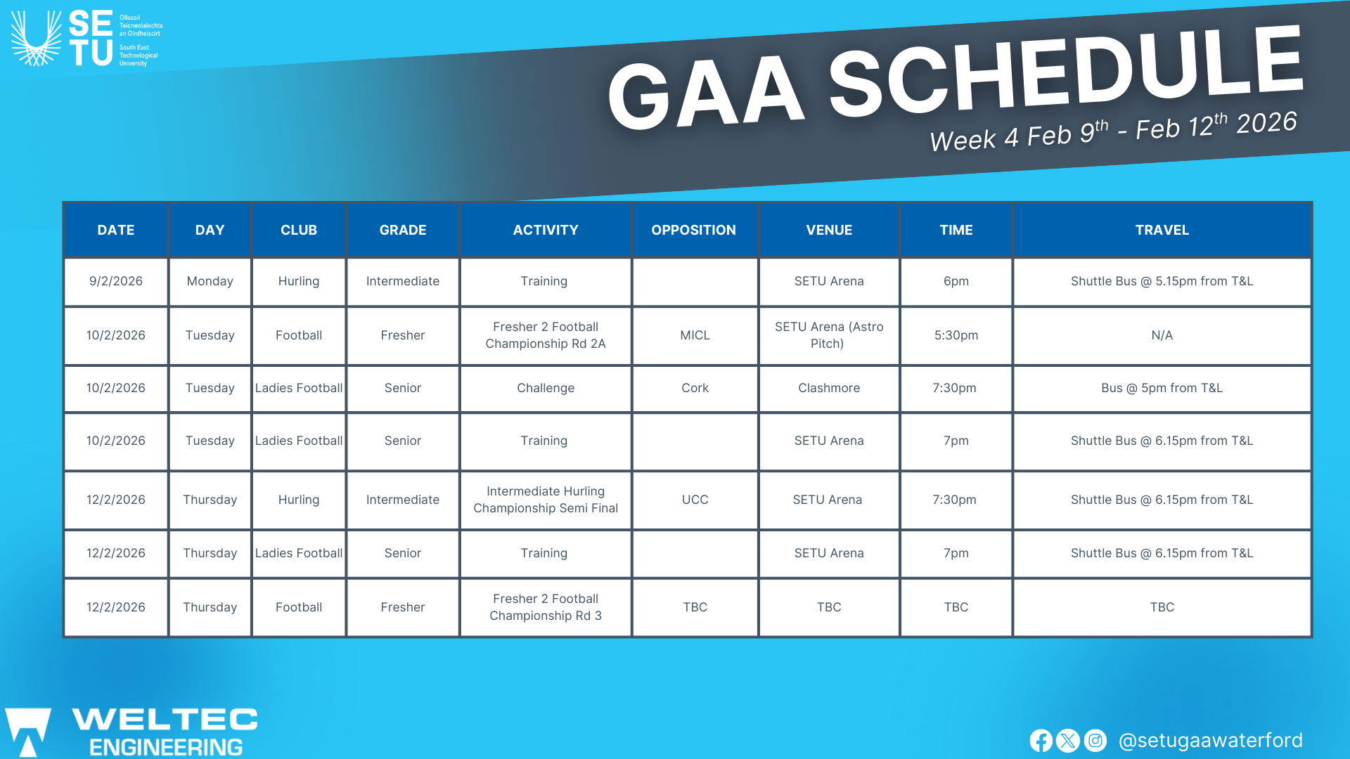 Please follow our socials to keep up to date on the latest GAA News, Trainings & Fixtures.